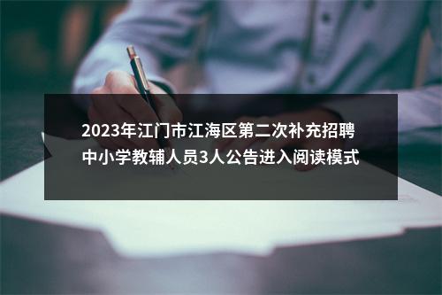 本次面向社会补充招聘中小学教辅人员3名,岗位详见《2023年江门市江海区公办中小学教辅人员第二次补充招聘岗位表》(附件1)。