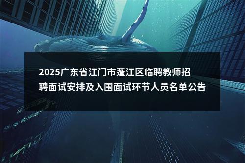 原标题:广东省江门市蓬江区2025年临聘教师招聘面试安排及入围面试环节人员名单公告