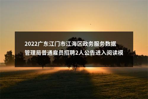 【2022广东江门市江海区政务服务数据管理局普通雇员招聘2人公告进入阅读模式】相关岗位: