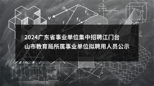 声明:专注 2024广东省事业单位集中招聘江门台山市教育局所属事业单位拟聘用人员公示(第四批,3人) 相关岗位分析;专业指导面试技巧;保障就业成功概率。