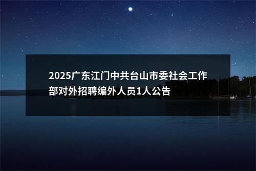 2025广东江门中共台山市委社会工作部对外招聘编外人员1人公告进根据工作需要,现面向社会公开招聘1名编外人员,具体事项公告如下: