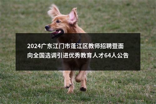 原标题:2024年江门市蓬江区教师招聘暨面向全国选调引进优秀教育人才公告(本地专场)