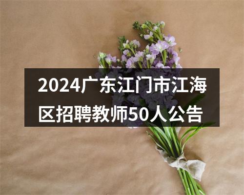 面向社会公开招聘公办中小学事业编制教师50名,岗位及人数见《2024年江门市江海区公开招聘教师岗位表》(附件1)。