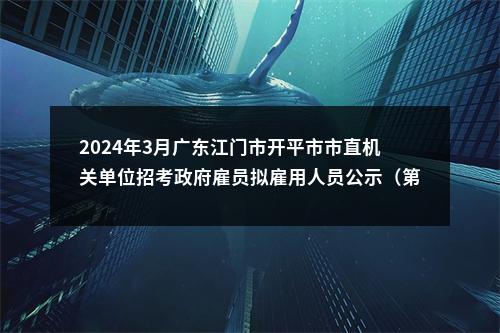 原标题:2024年3月开平市市直机关单位公开招考政府雇员拟雇用人员公示(第一批)