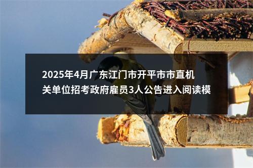 【2025年4月广东江门市开平市市直机关单位招考政府雇员3人公告进入阅读模式】相关岗位: