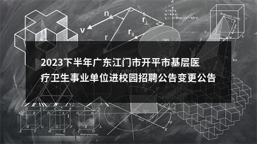 原标题:2023年下半年开平市基层医疗卫生事业单位进校园公开招聘公告变更公告